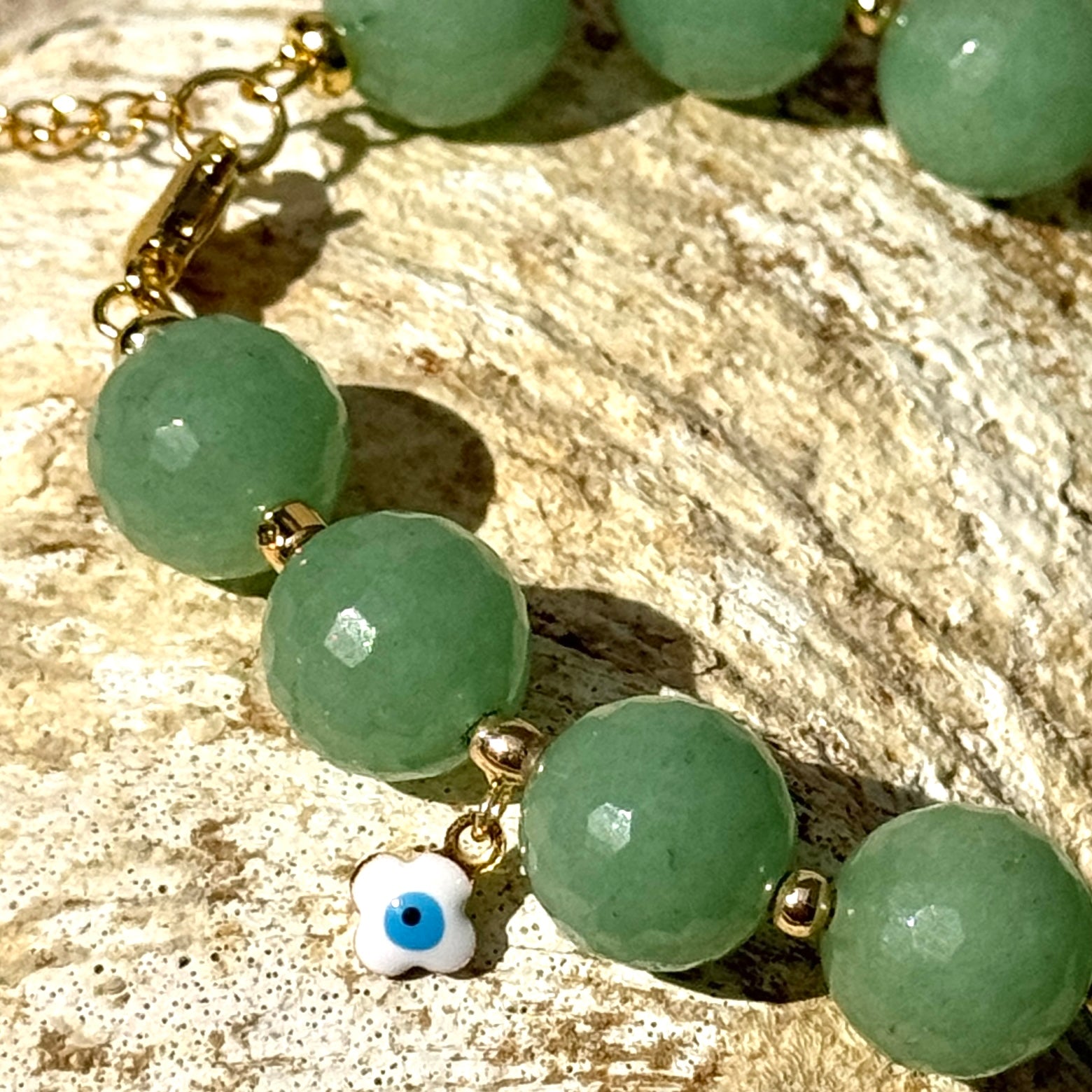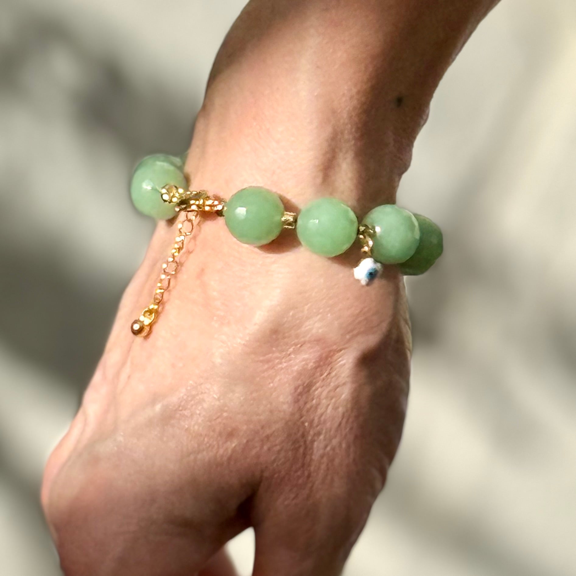 Faceted jade with white evil eye bracelet
