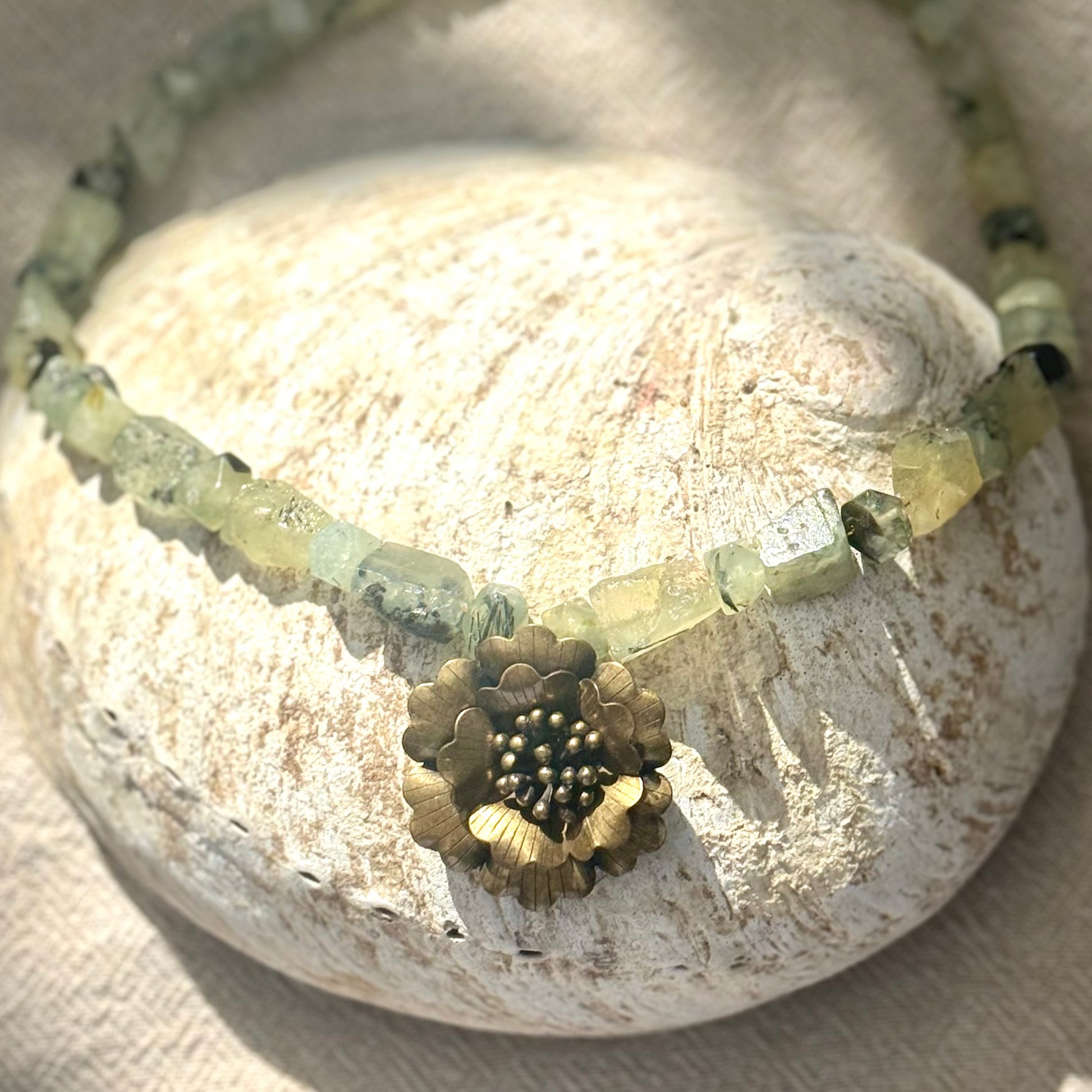 Prehnite | Brass Flower Pendant